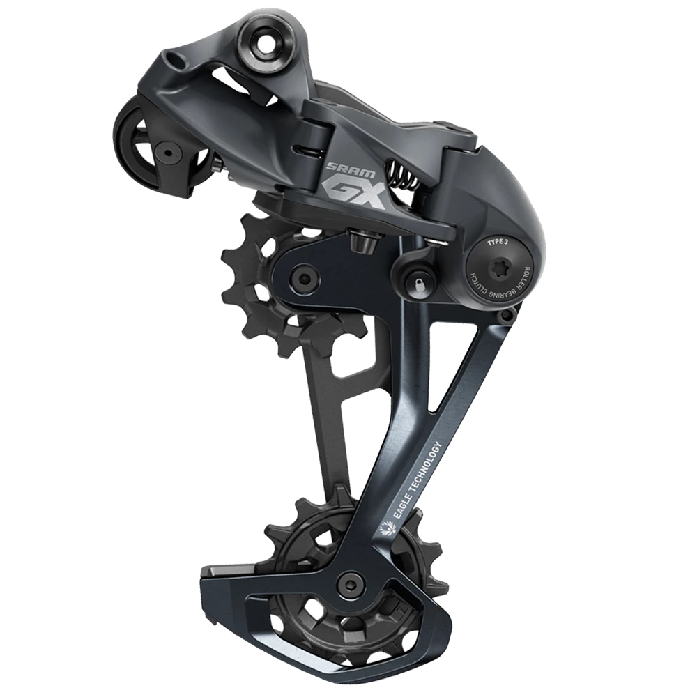 Das neue Schaltwerk zu der Sram GX Eagle 12 fach Gruppe mit groesserer Schaltkapazitaet, bis 52 Zaehne. Das neue Eagle-Schaltwerk hat nicht nur eine groessere Kapazitaet; es ist auch die naechste Stufe der bewaehrten, speziell fuer 1x-Schaltungen entwickelten X-HORIZON -Technologie. Die untere, groessere X-SYNC -Schaltrolle mit 14 Zaehnen gewaehrleistet genuegend Kapazitaet, um die Kassette mit Ritzeln von 10 bis 52 Zaehnen zu bewaeltigen. Die Konstruktion des Schaltwerks ist dennoch kompakt. Seine Drehmomentkurve ist durch unsere neue Type-3 ROLLER BEARING CLUTCH noch gleichmaessiger, sodass das Schalten leiser und runder funktioniert.