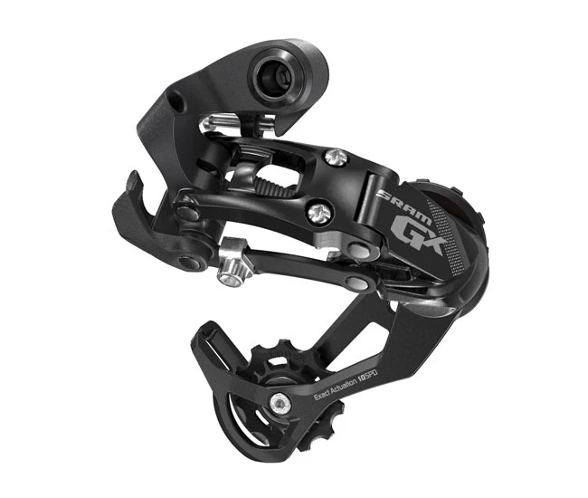 Das Sram GX Schaltwerk mit dem mittellangem Schaltarm, die Empfehlung fuer die Sram 2 fach Kurbel und 3 fach Kurbel mit mit Race Uebersetzung.