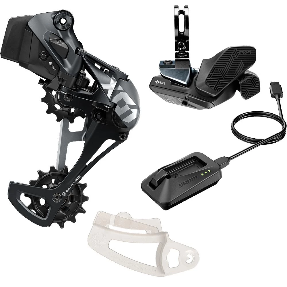 Die Sram X01 AXS eTap Eagle 12 fach Komponenten das 12×1 Antriebskonzept jetzt in der neuen Version mit Rocker Controller. Die Enduro X01 AXS Ausfuehrung mit Edelstahl Hardware.