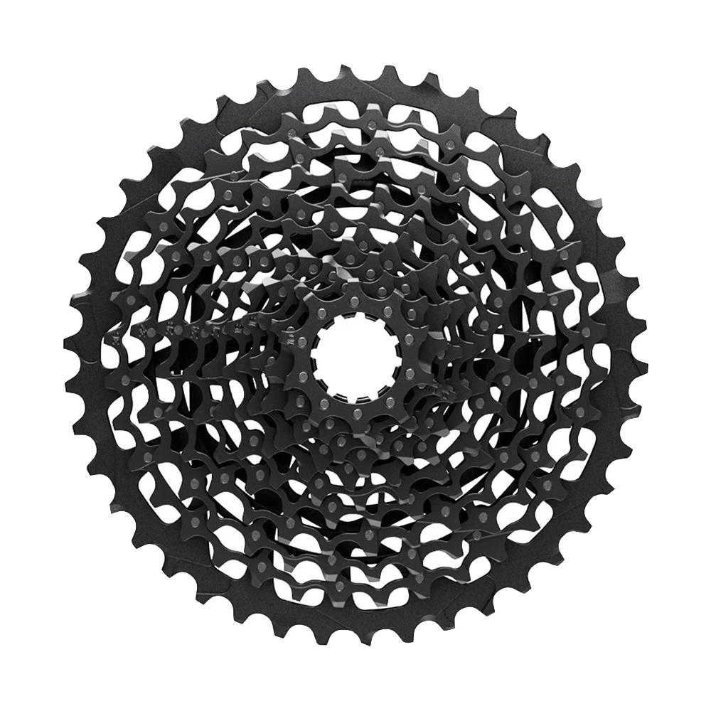 Die preiswerte 11 Sram MTB Kassette mit der Abstufung von 10-42 Zaehnen bietet die 11-fach Kassette eine unglaubliche Uebersetzungsbandbreite und behaelt dennoch optimale Abstufungen bei. In Kombination mit dem XD Freilauf ist sie perfekt mit dem Laufrad verbunden. Die Konstruktion der Full Pin Kassette, mit 123 hochfesten Stahlpins reduziert das Gewicht und bietet hohe Haktbarkeit. Das offene Design ist weniger schmutzanfaellig, sorgt fuer sauberere Schaltvorgaenge und laengere Haltbarkeit.